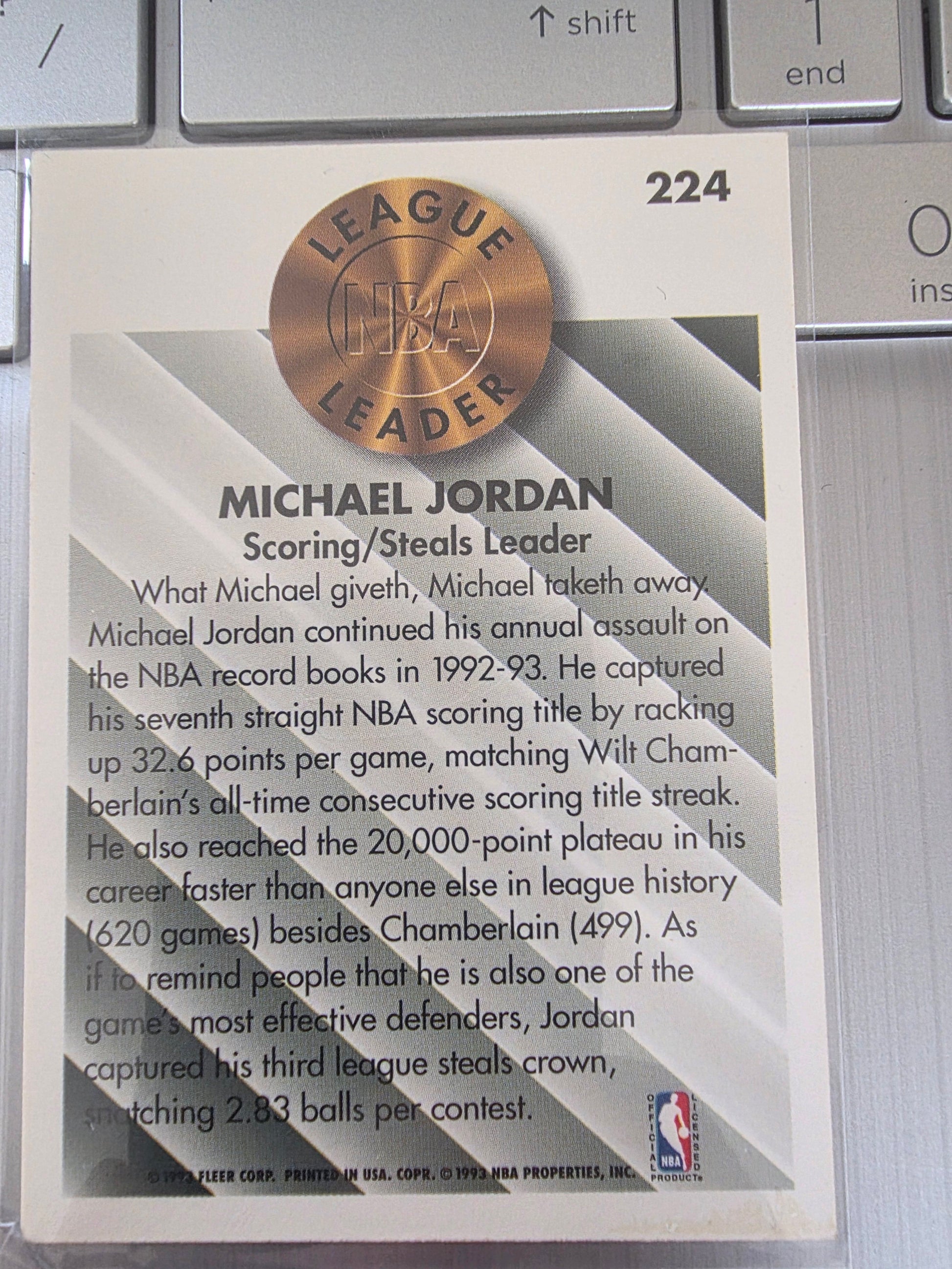 Celebrate one of basketball’s greatest moments with the Michael Jordan Fleer 93-94 League Leader card. This iconic collectible highlights Jordan's unparalleled performance during the 1993-94 NBA season, capturing his leadership and scoring prowess. A must-have for serious collectors, this card represents a pivotal era in Jordan's career, combining nostalgic value with investment potential. Its timeless design and historical significance make it a prized addition to any expert’s sports memorabilia collection.
